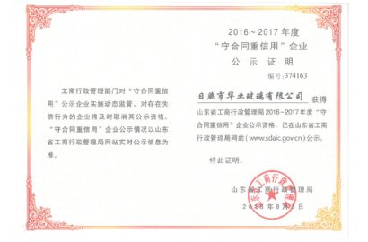 祝賀我公司獲得2016-2017年度省級“守合同重信用企業”。