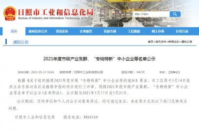 根據《關于組織推薦2021年度市級“專精特新”中小企業等的通知》要求,市工信局于5月14日組織五名專家對各區縣推薦申報的項目進行了評審。我公司申報的日照市“瞪羚”企業通過評審。